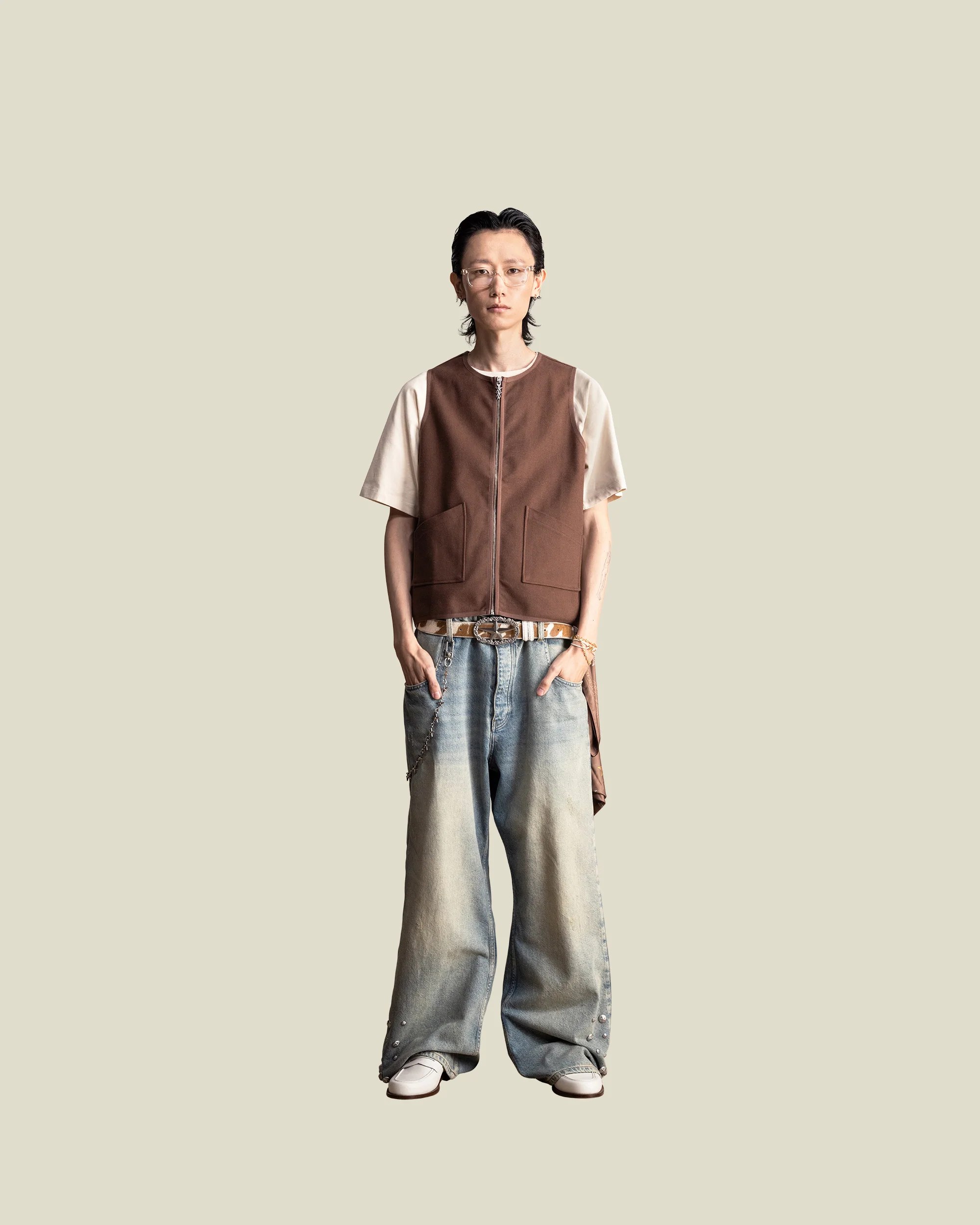The Amber Vest features our signature Systemic Star Zipper, blending functionality with a touch of flair. The back showcases a high-definition ornament embroidery, adding a unique and sophisticated touch to your look.
