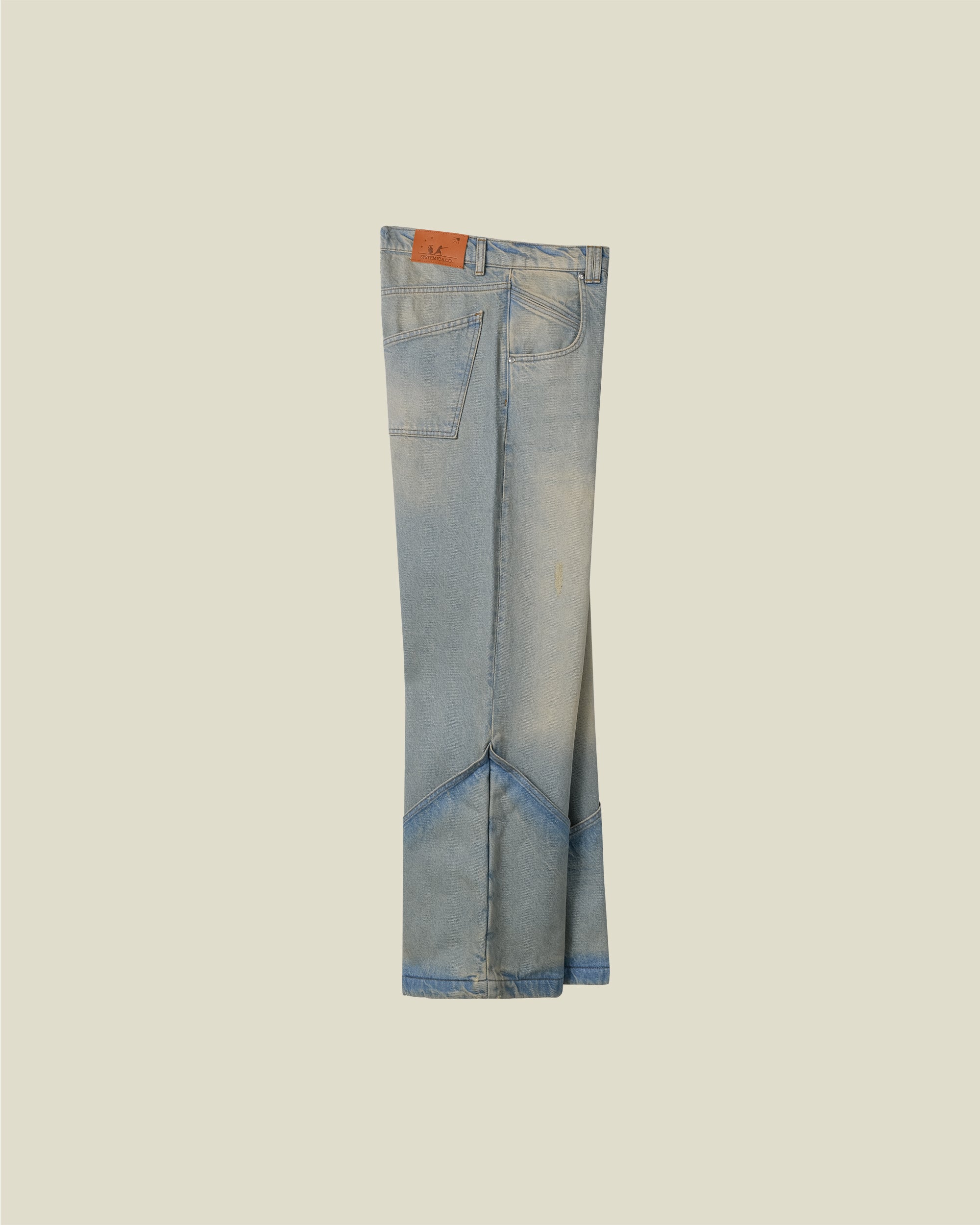 Our Double Barrel Denim features a slighty baggy, everyday cut with compartments on the front and back which optimize the way they sit on top of your footwear. The individual wash process makes every pair unique. A double belt loop can be found on the front as well, which we call the double barrel. The back of our Denim features a genuine leather tag with our debossed official logo. The back pockets have our enchanting signature shape pockets.