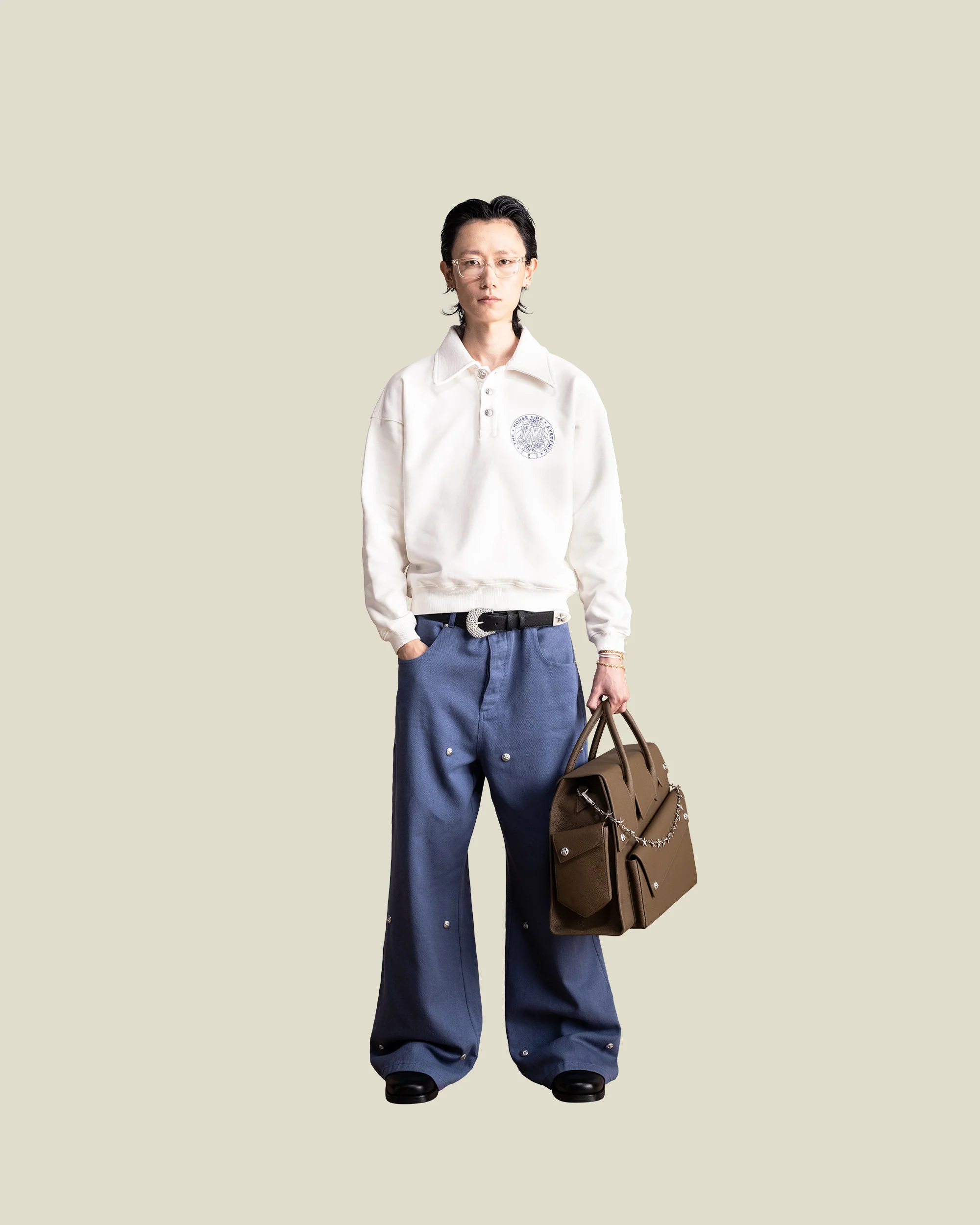 The Polo Button Sweater blends classic style and modern comfort. It has been specially treated with a unique wash, giving it an authentic vintage feel. Featuring Systemic’s signature Star Buttons in a used optic, adding a distinctive touch to your wardrobe. The Americana college-inspired print on the chest pays homage to timeless collegiate fashion, making it a standout choice for any casual occasion.