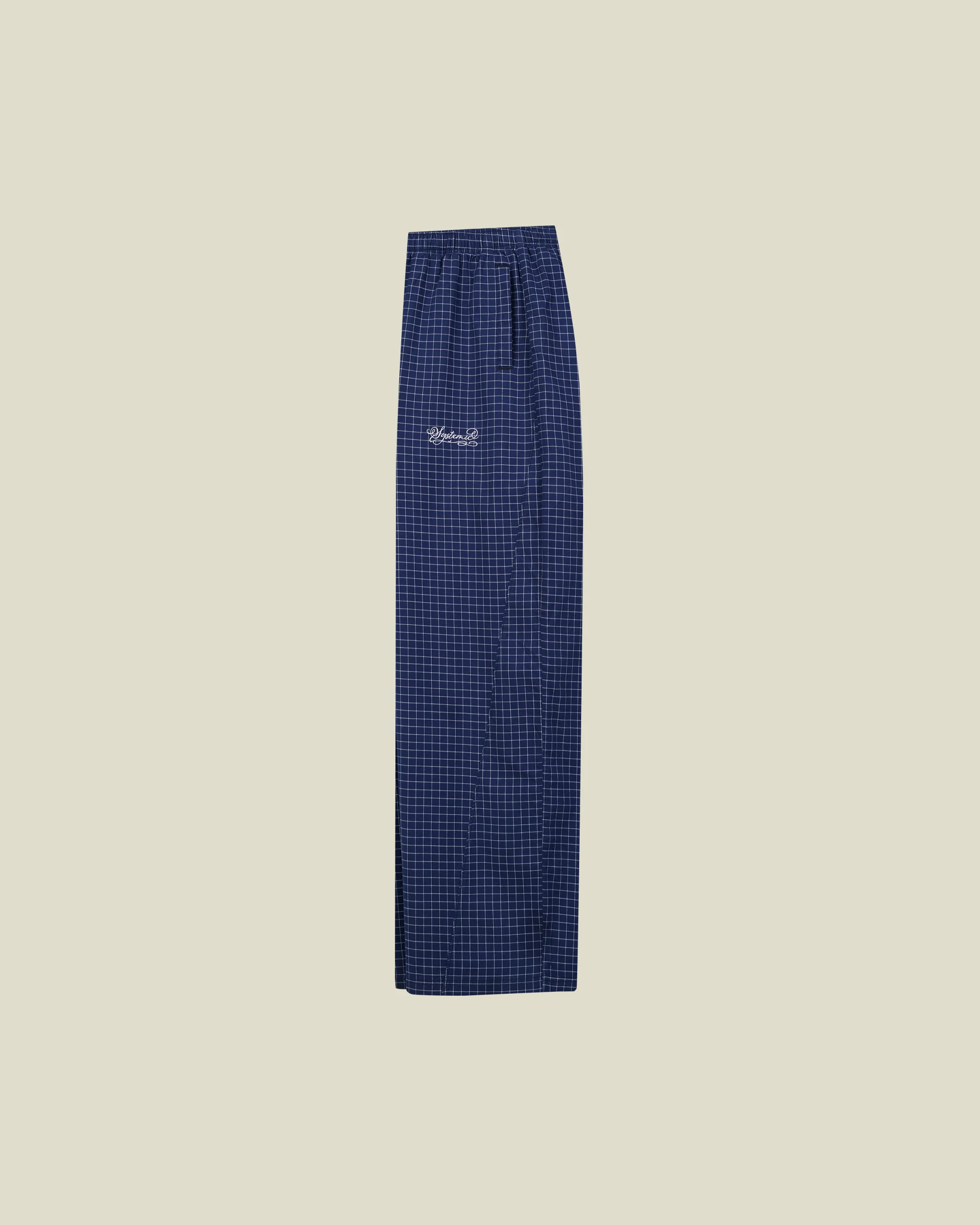 The SoHo Lounge Pants are the perfect complement to laid back sophistication. Crafted from a fully woven cotton checkered fabric with a navy base and white checks, these pants bring together comfort and style. Adorned with our signature Systemic pocket shape, they offer both function and a standout silhouette. Finished with a high definition Systemic embroidery in white, these lounge pants are the perfect piece for everyday wear.