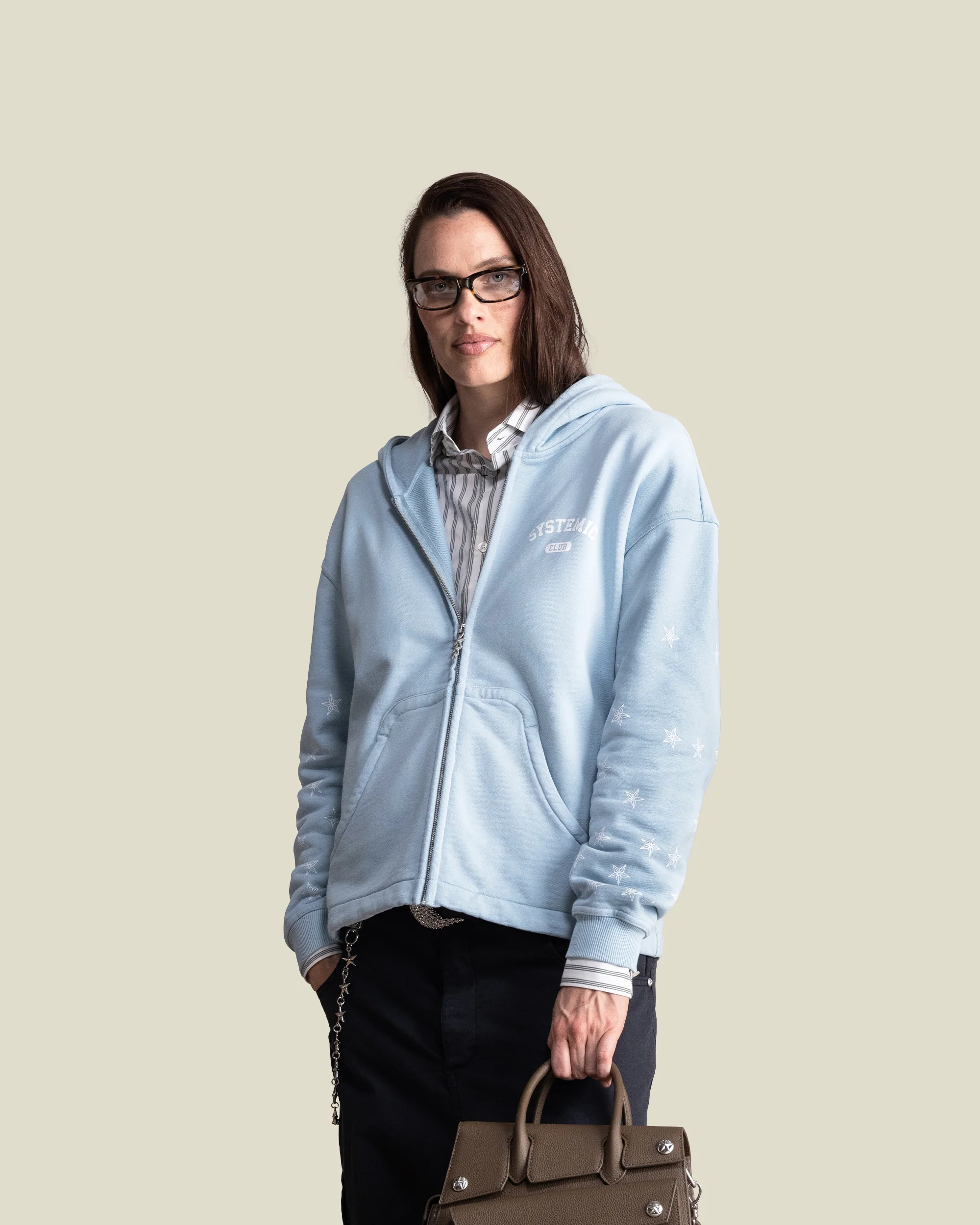 The Star Zip Hoodie features a light wash, together with Systemic’s signature star all over printed on the sleeves. It also has rounded front pockets together with a raglan cut and Systemic signature seams around the arms and back. All of our Zip Hoodies went through an aging treatment to keep the product unique & special.